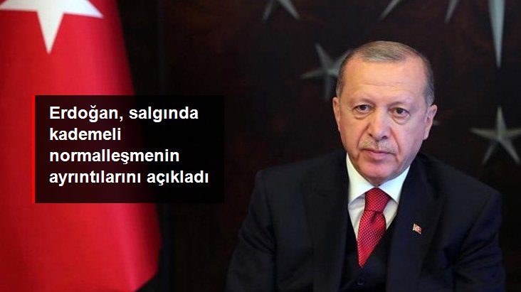 Erdoğan, salgında kademeli normalleşme sürecinin ayrıntılarını açıkladı.Virüse karşı alınan tedbirlerde 1,5 ayın geride kaldığını ifade eden Erdoğan, “Aldığımız tedbirlerin önemli kısmında 1,5 ayı geride bıraktık. Uzun süre boyunca okuluna gidemeyen öğrenci, işyerini açamayan esnaf, çalışamayan işçi, sokağa çıkamayan genç ve yaşlılarımızın hayatını sınırlandırmak zorunda kalan tüm insanlarımızın eski günleri özlediklerini biliyoruz” dedi.