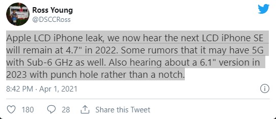 Apple LCD iPhone sızıntısı, şimdi bir sonraki LCD iPhone SE’nin 2022’de 4.7 “olarak kalacağını duyuyoruz. Alt-6 GHz ile 5G’ye sahip olabileceğine dair bazı söylentiler. bir çentik.